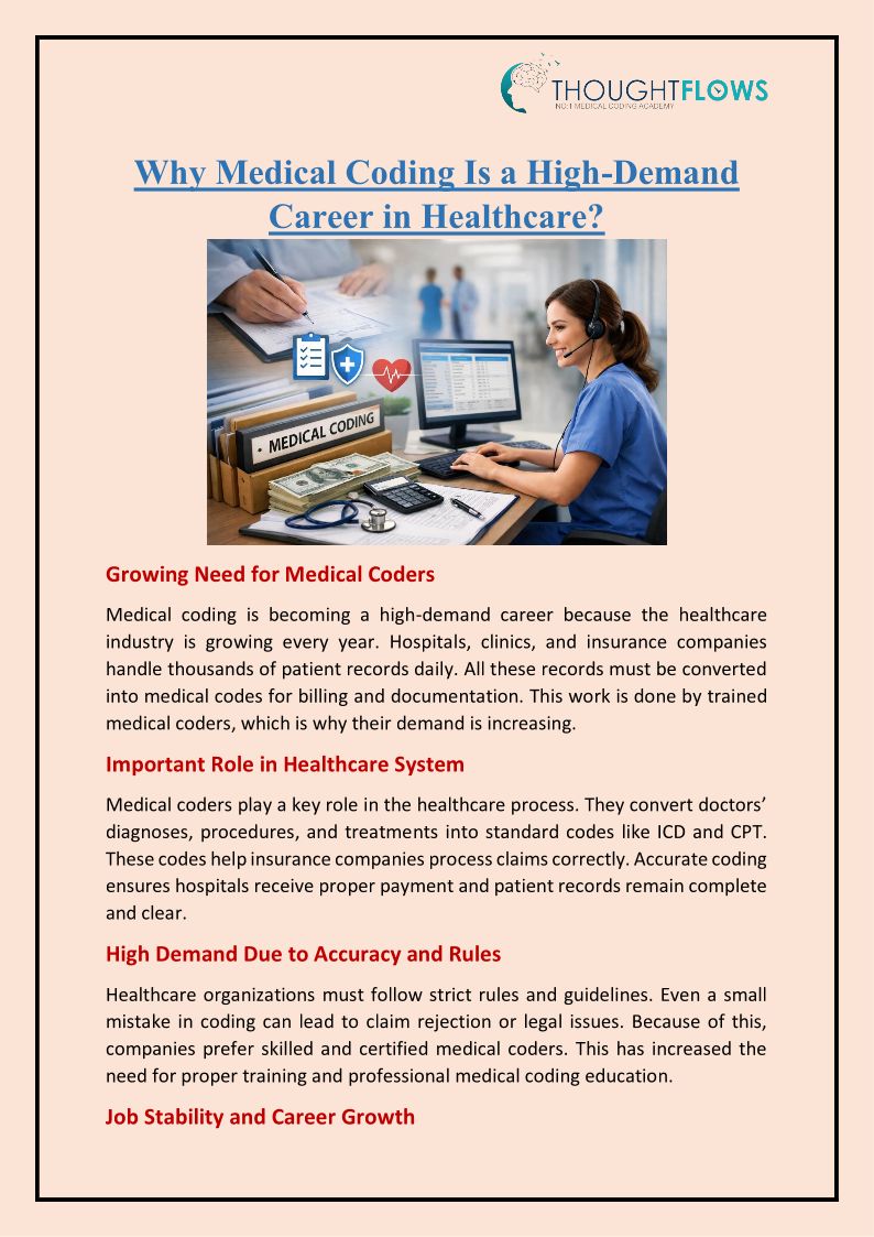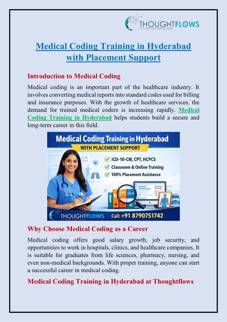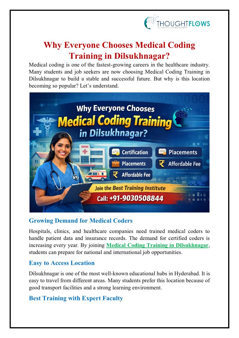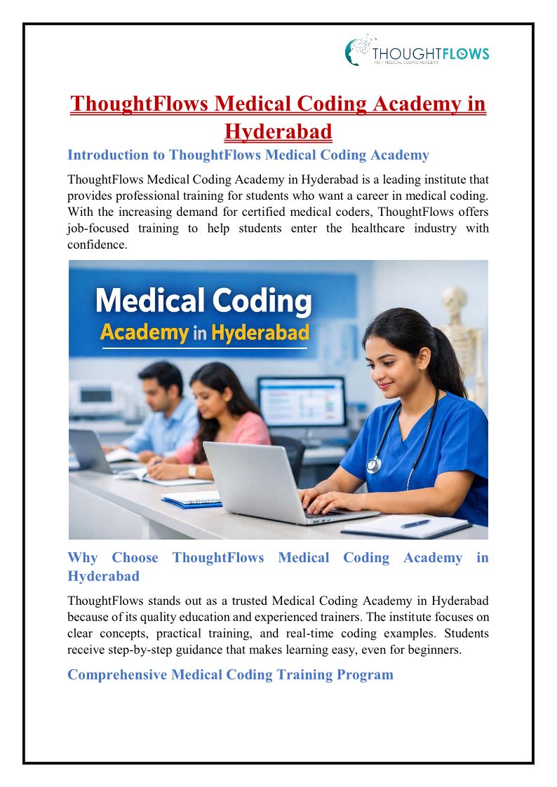 ThoughtFlows is a top Medical Coding Institute with branches across India, offering expert training, RCM process, and placement support.