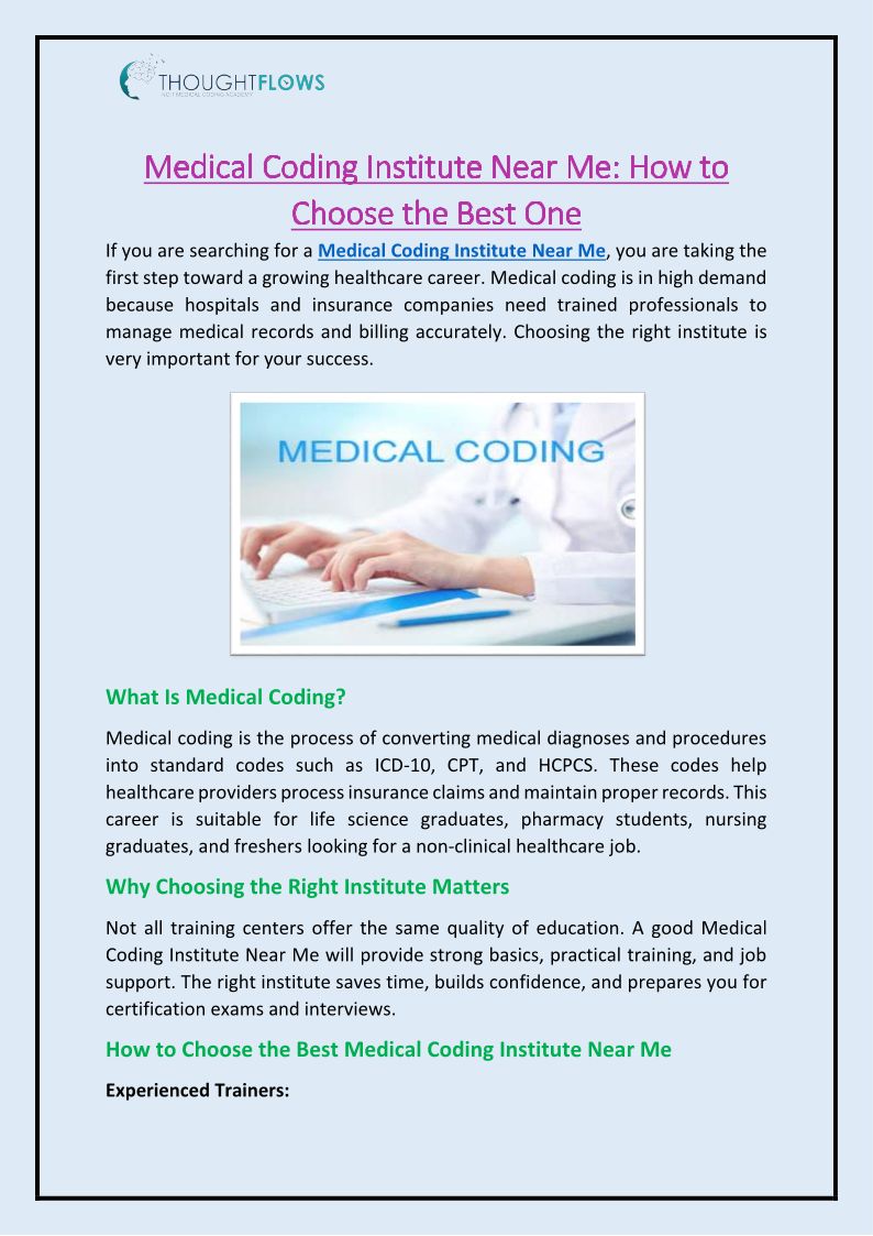 ThoughtFlows is a top Medical Coding Institute with branches across India, offering expert training, RCM process, and placement support.