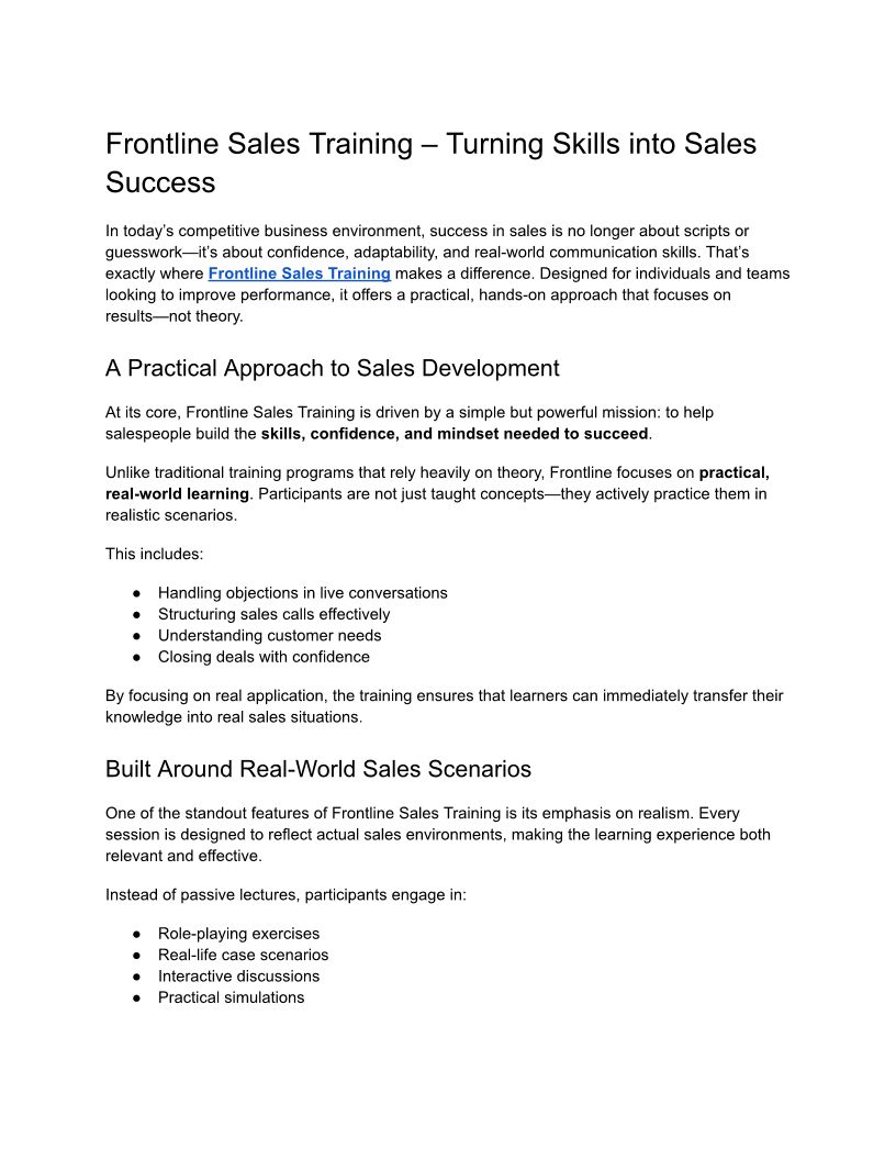 Frontline Sales Training –...