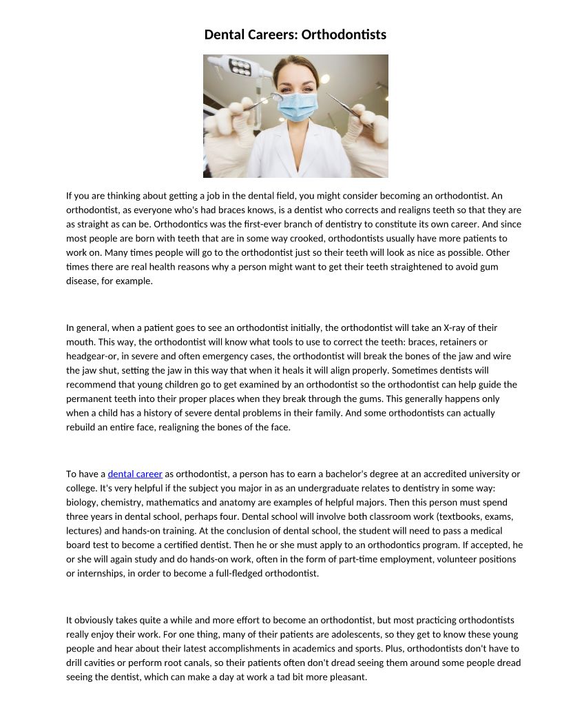 Dental Careers: Orthodontist...