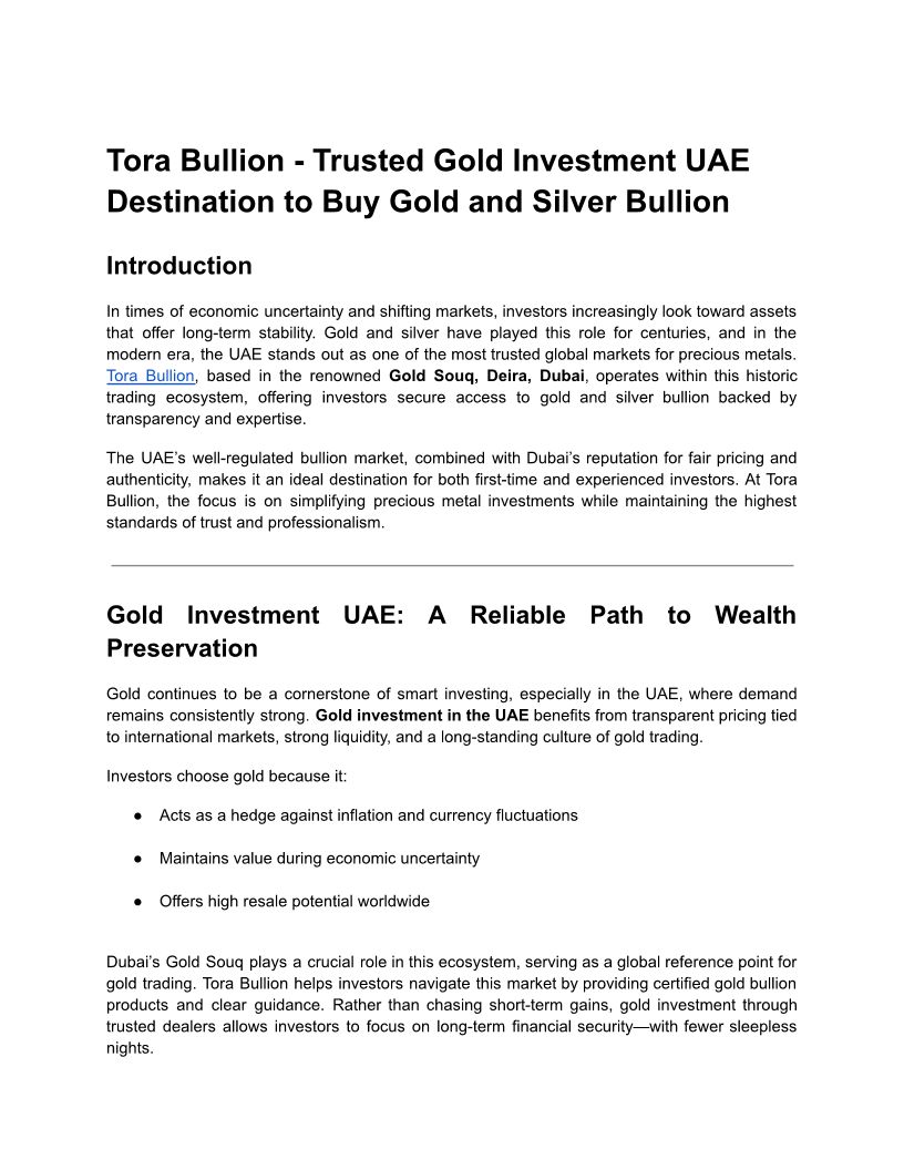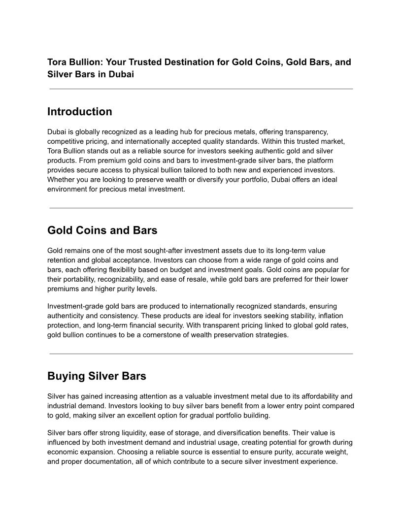 Tora Bullion: Your Trusted D...