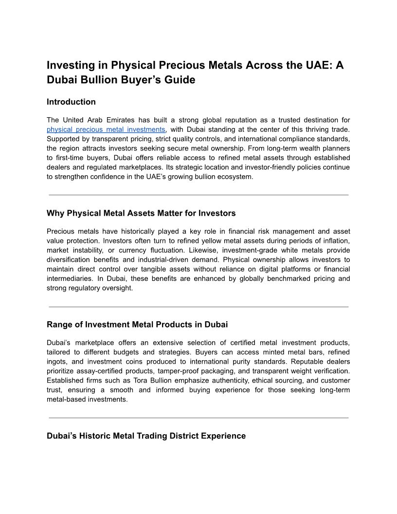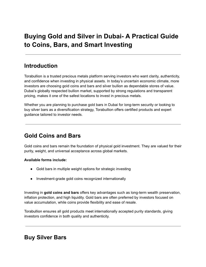 Buying Gold and Silver in Du...