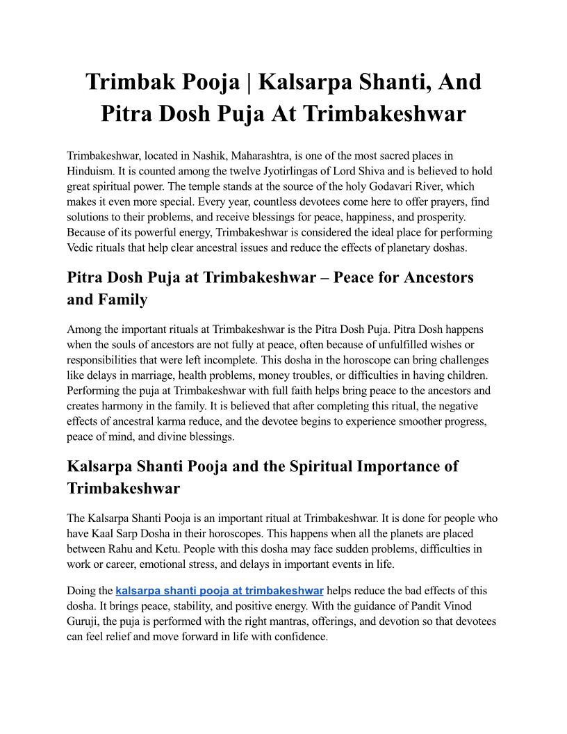 Trimbak Pooja | Kalsarpa Sha...
