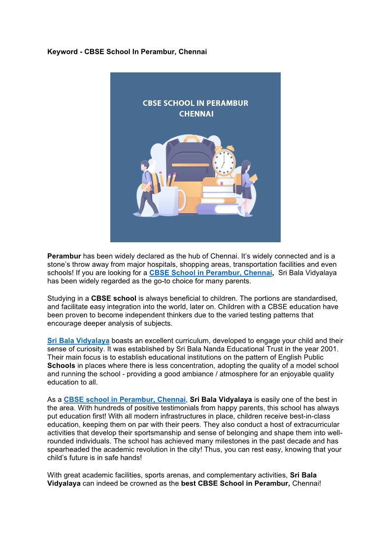 CBSE School in Perambur Chen...