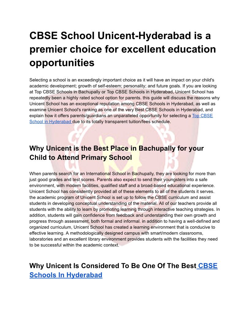 Unicent school one of the Best CBSE Schools in Hyderabad offers the best education to students with advanced learning methods