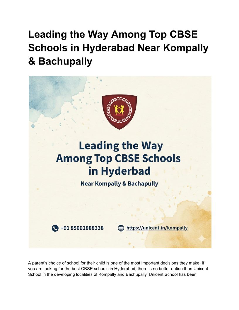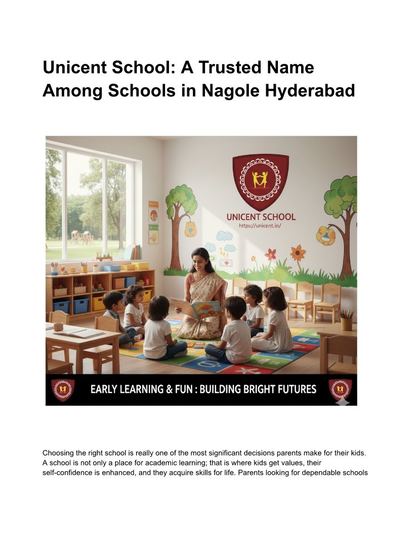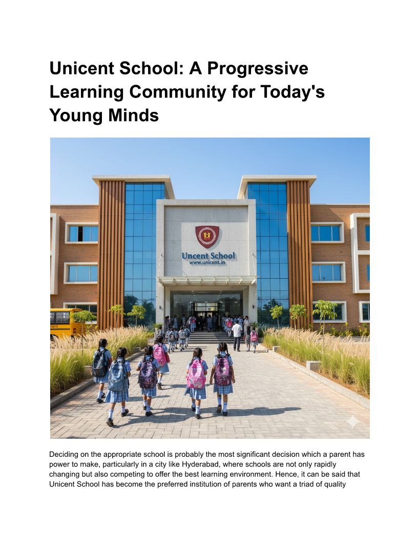Unicent school one of the Best CBSE Schools in Hyderabad offers the best education to students with advanced learning methods
