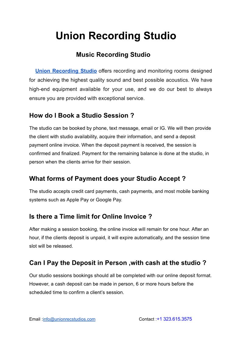 Union Recording Studio-music...