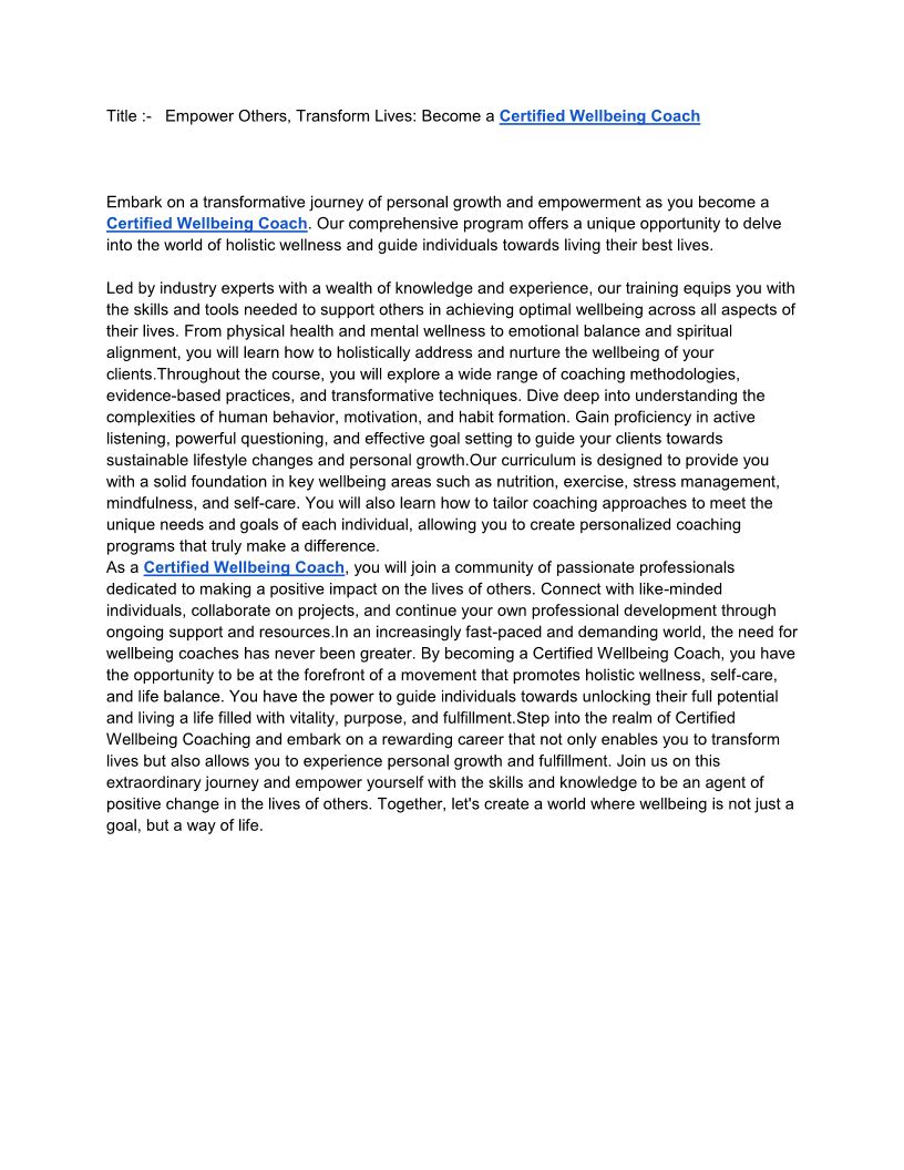 Certified Wellbeing Coach