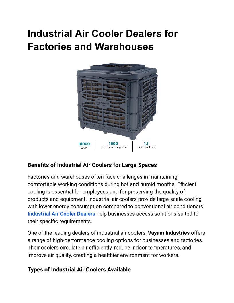 Industrial Air Cooler Dealer...