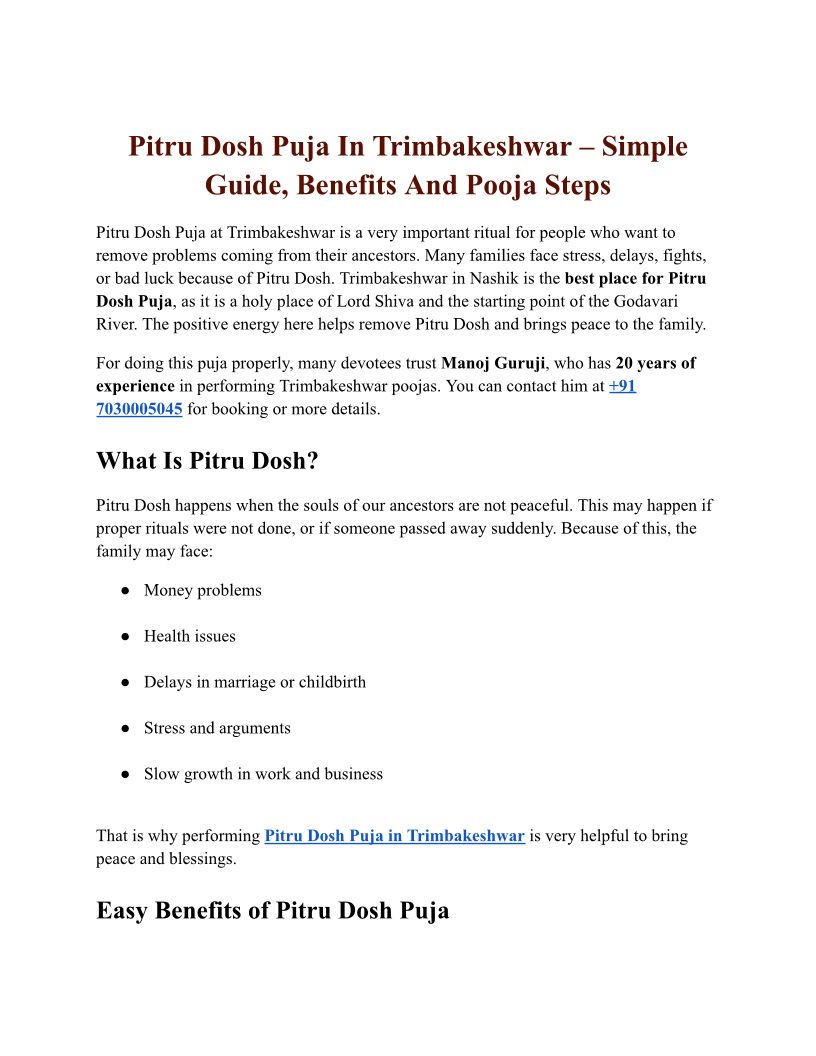 Pitra Dosh Puja In Nashik �...