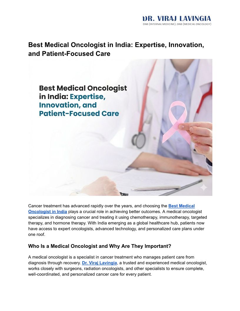 Dr. Viraj Lavingia is the best medical oncologist in Ahmedabad with 10+ years of experience and 5000+ patients treated. Book your consultation today!