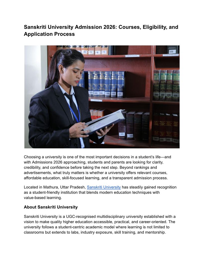 Sanskriti University Admissi...