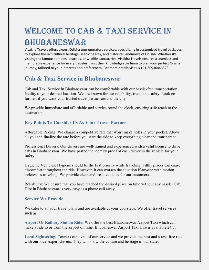 Taxi Service in Bhubaneswar ...