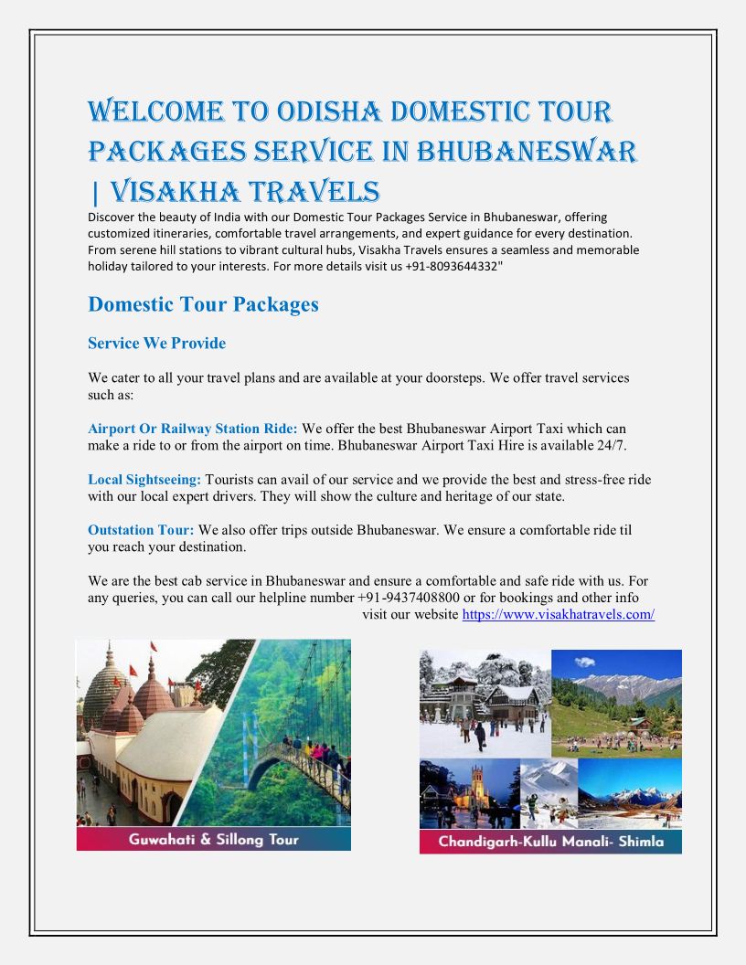 Domestic Tour Packages Servi...