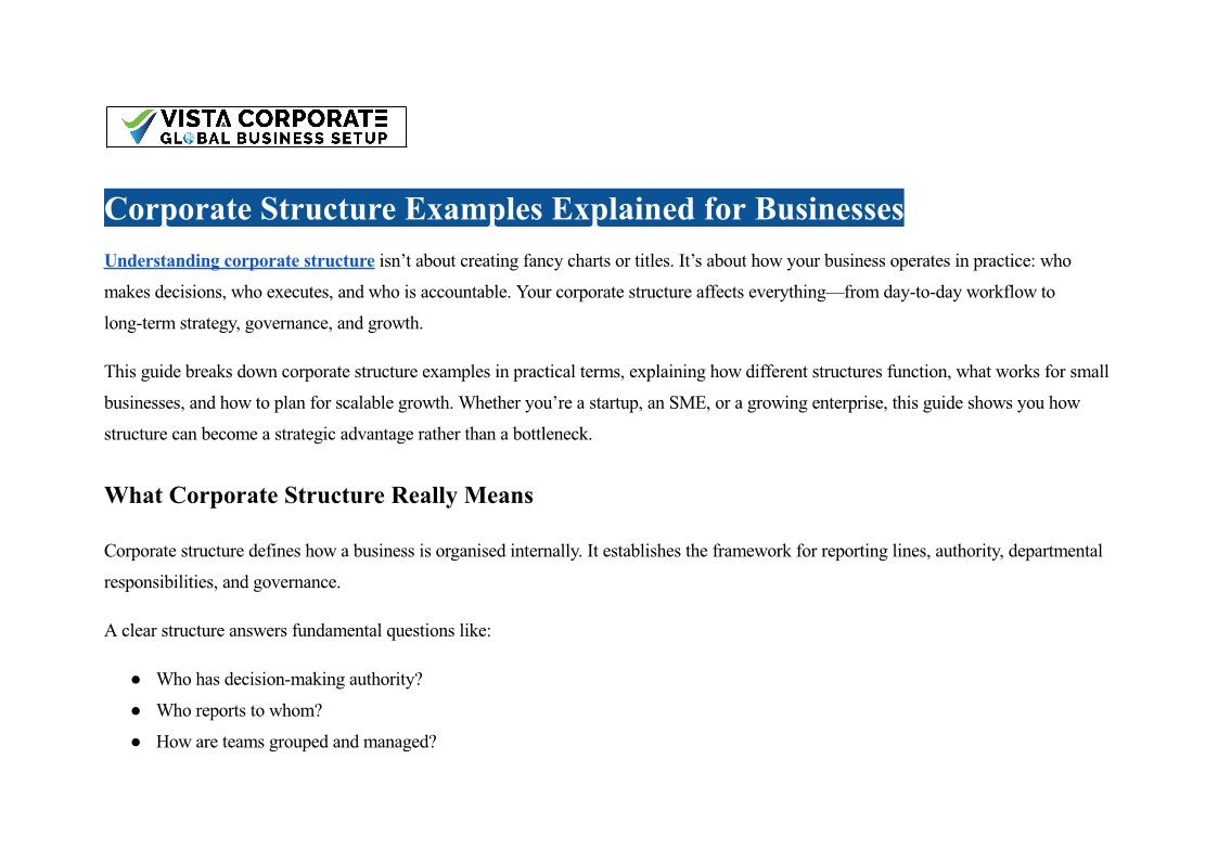 Corporate Structure Examples...