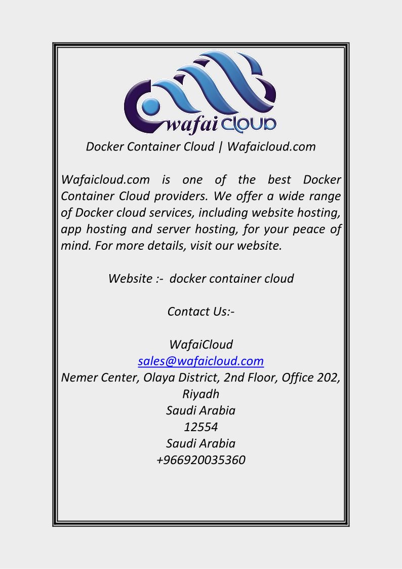 Docker Container Cloud Wafai...