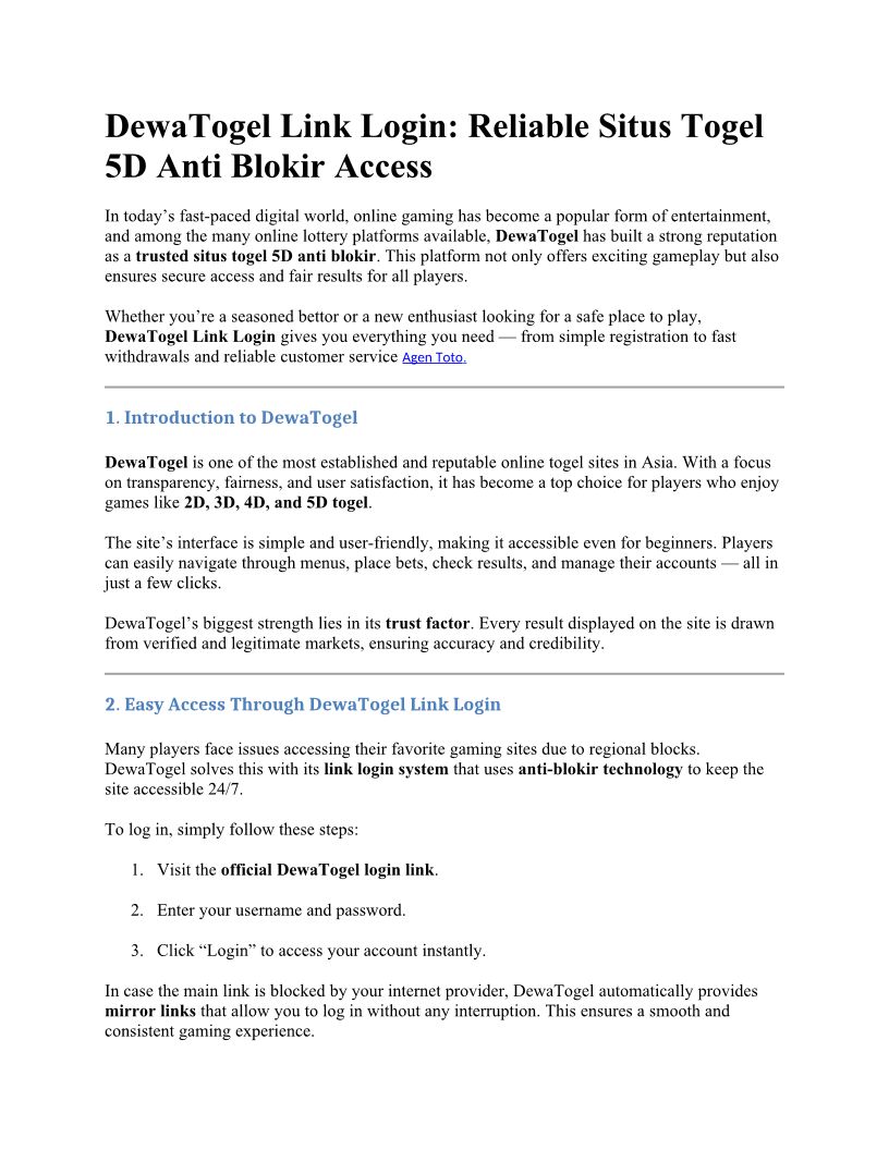 Login Dewatogel