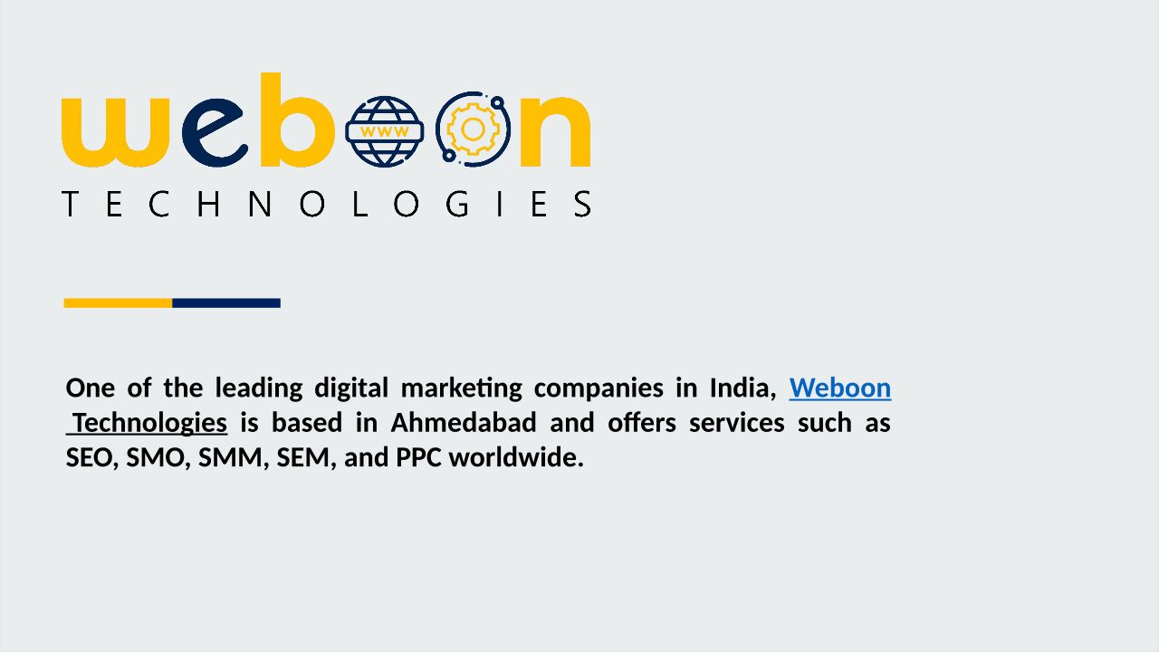 Weboon Technologies is a one of the leading digital marketing company in India based in Ahmedabad offering result driven digital marketing services like SEO, SM