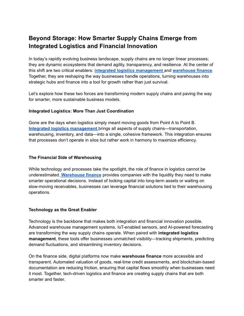The role of logistics infras...