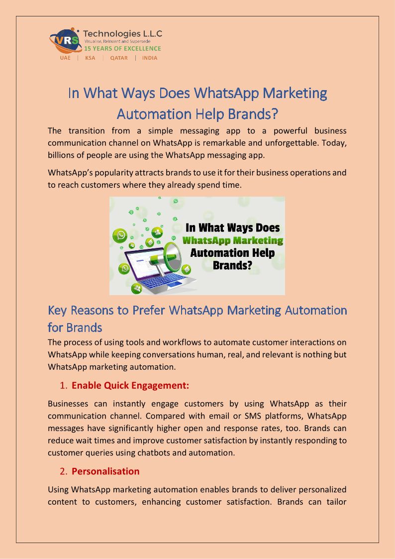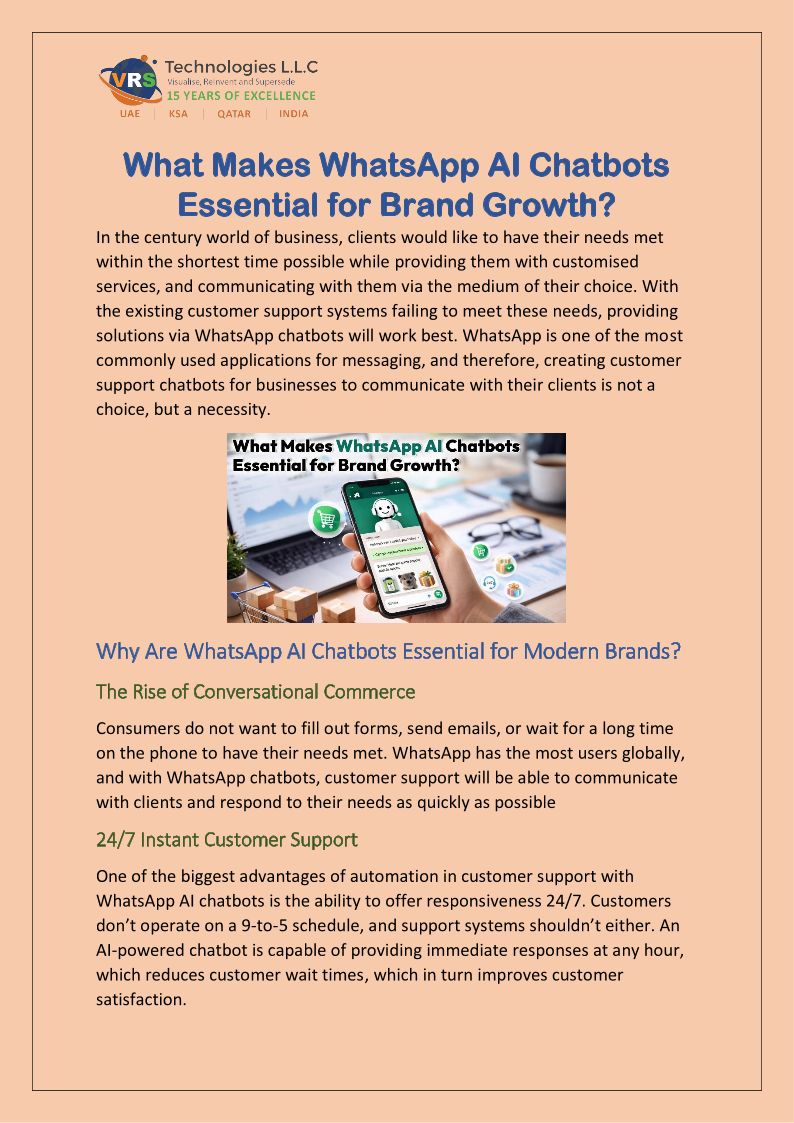 "Upgrade customer communication with VRS Technologies LLC. We provide WhatsApp API UAE setup, automation, bulk messaging, chatbots & CRM integration.