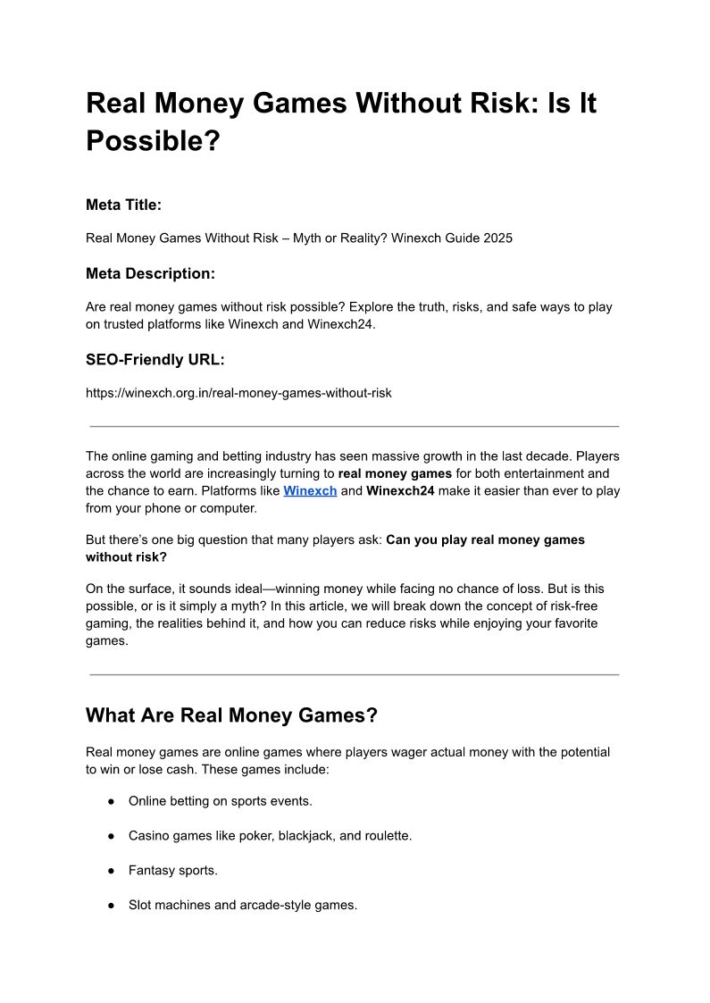 Real Money Games Without Ris...