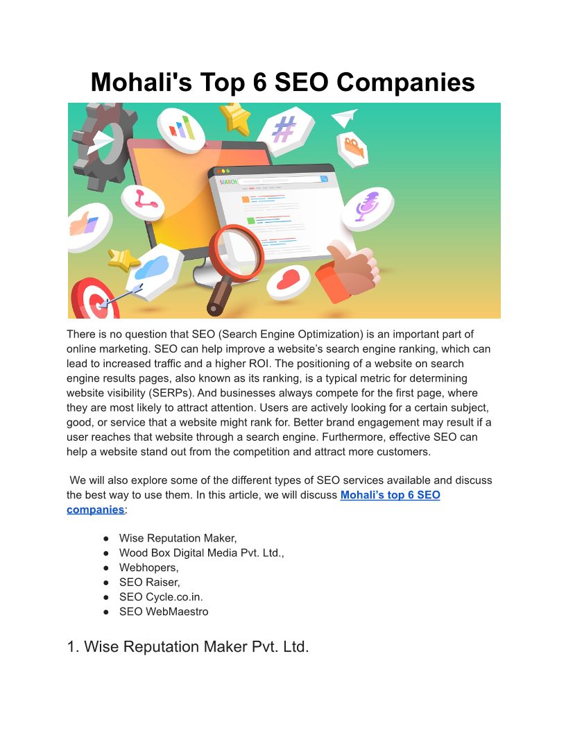 Mohali's Top 6 SEO Companies...