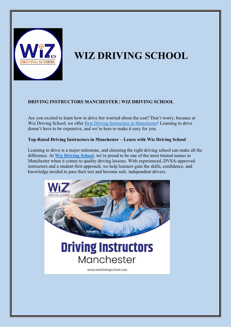 Wiz Driving School in Manchester offers personalized driving lessons with experienced instructors, ensuring students become confident and skilled drivers. Flexi