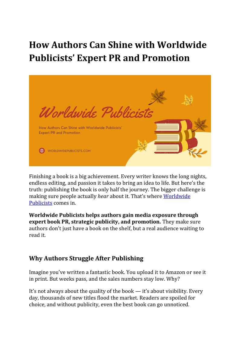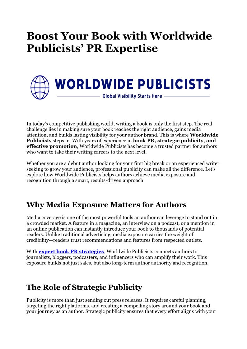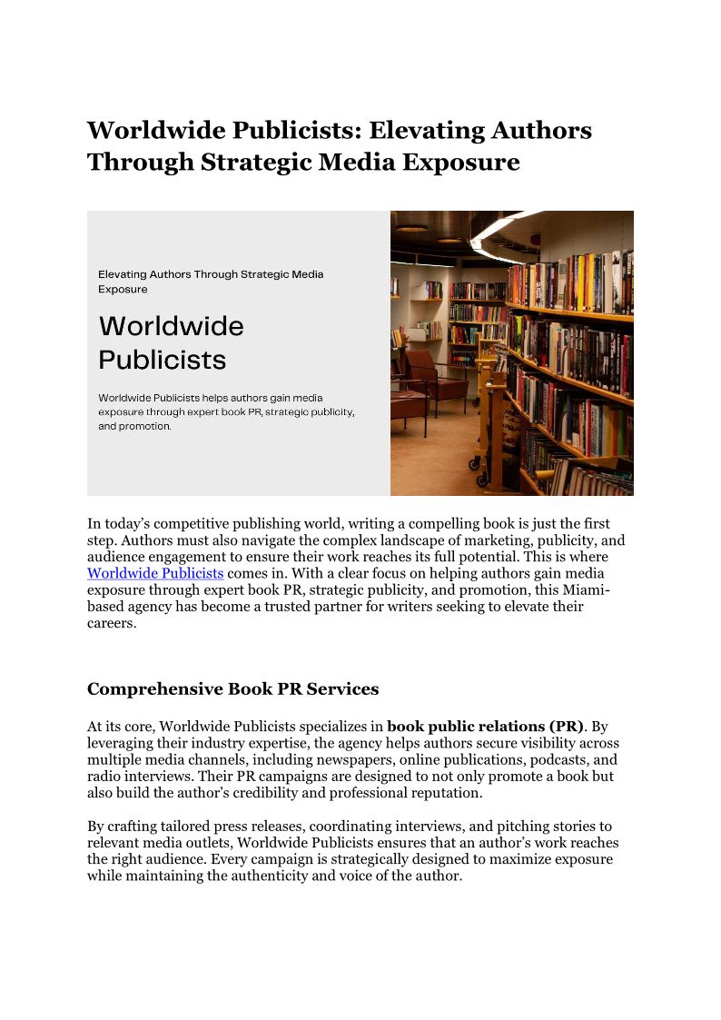 Discover how Worldwide Publicists use Book PR, Media strategies, and Book Promotion campaigns to help authors market their work effectively.