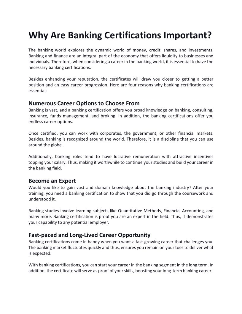 Why Are Banking Certificatio...