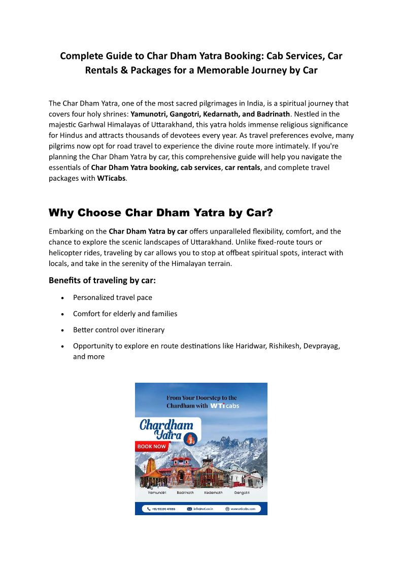 Why Char Dham Yatra by Car i...