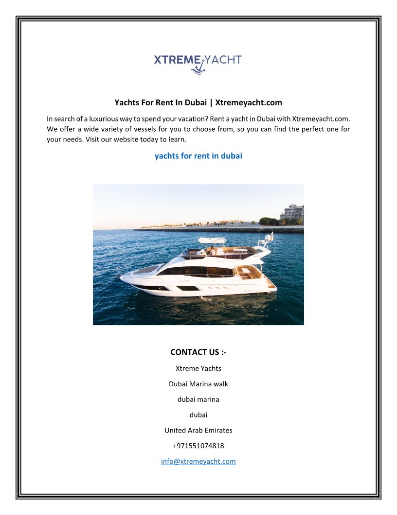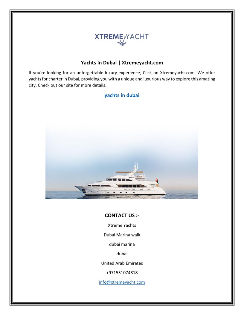 Yachts In Dubai Xtremeyacht....