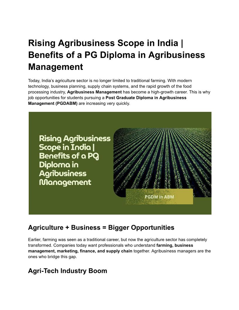 Rising Agribusiness Scope in...