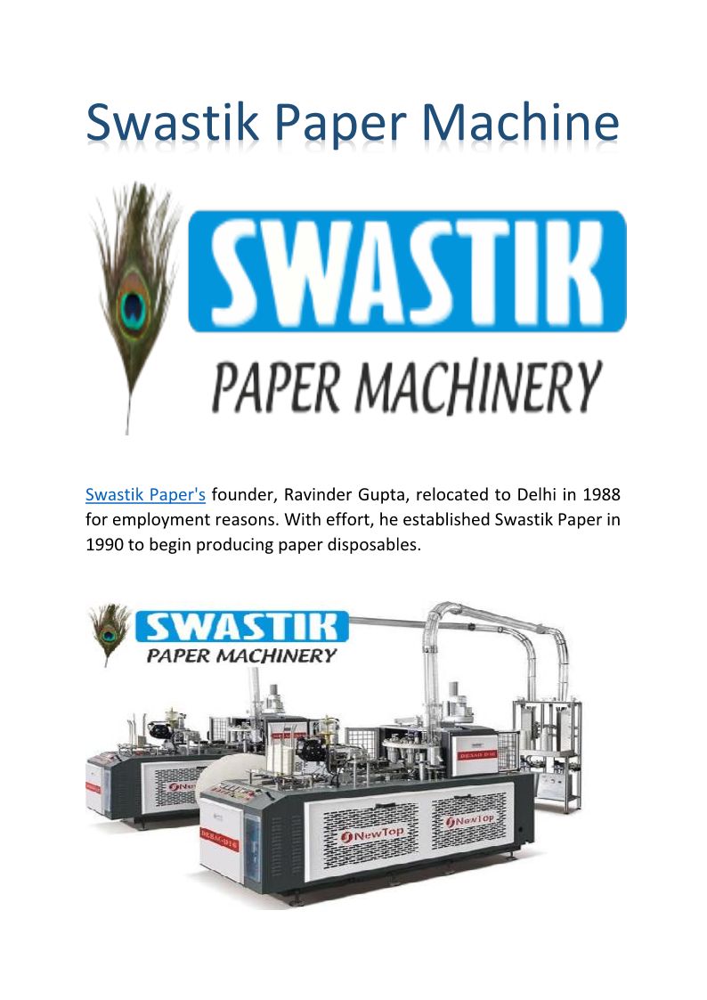 Swastik Paper Machine is a leading manufacturer of paper cup machines in Delhi. Our machines are designed with the latest technology to produce high-quality.