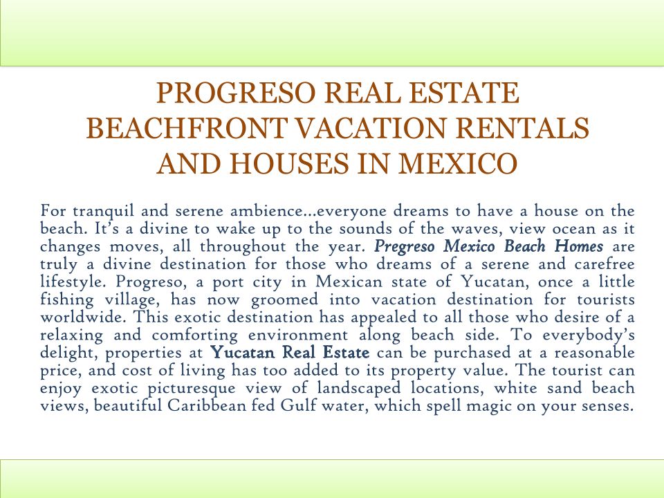 Yucatan beach homes offer quality and professional real estate services in Yucatan, Mexico, Coast, Chelem, Chuburna, Telchac, Progreso, Spain.