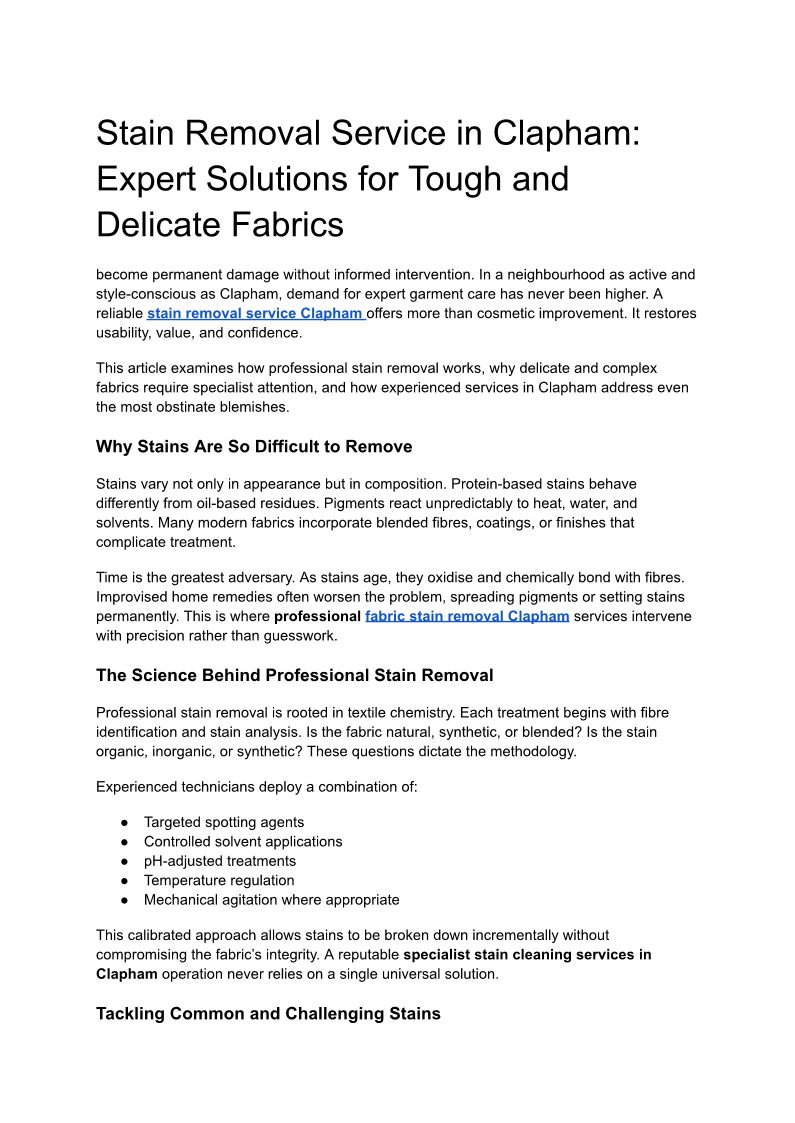 Stain Removal Service in Cla...